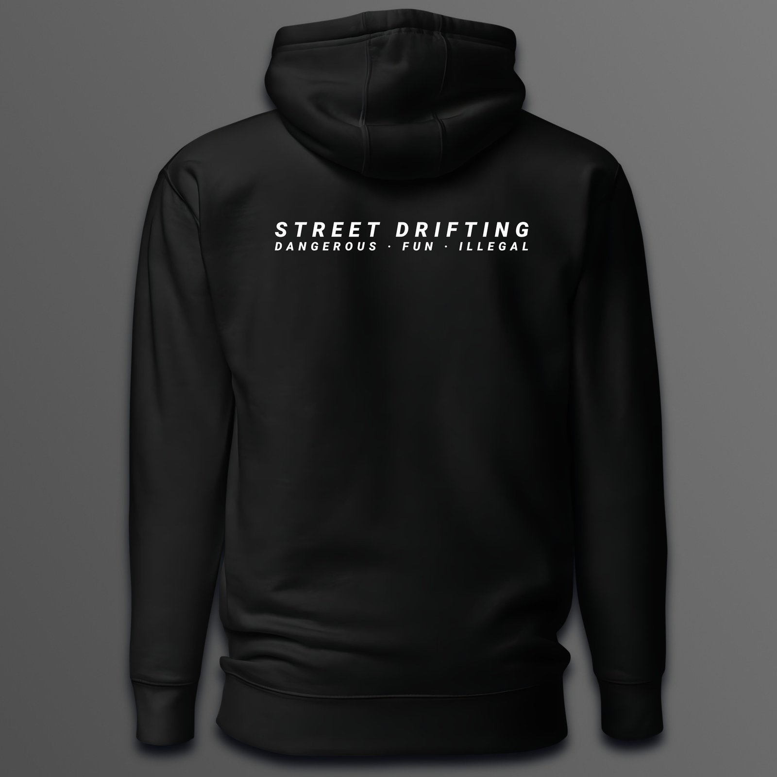 Raw honesty meets underground culture in this hoodie. The starburst front and “Dangerous, Fun, Illegal” back acknowledge drifting’s outlaw roots—midnight touge battles, real risks, pure skill. Minimalist design for purists who respect where it began while recognizing why the scene evolved toward tracks, safety, and preserving the artform.