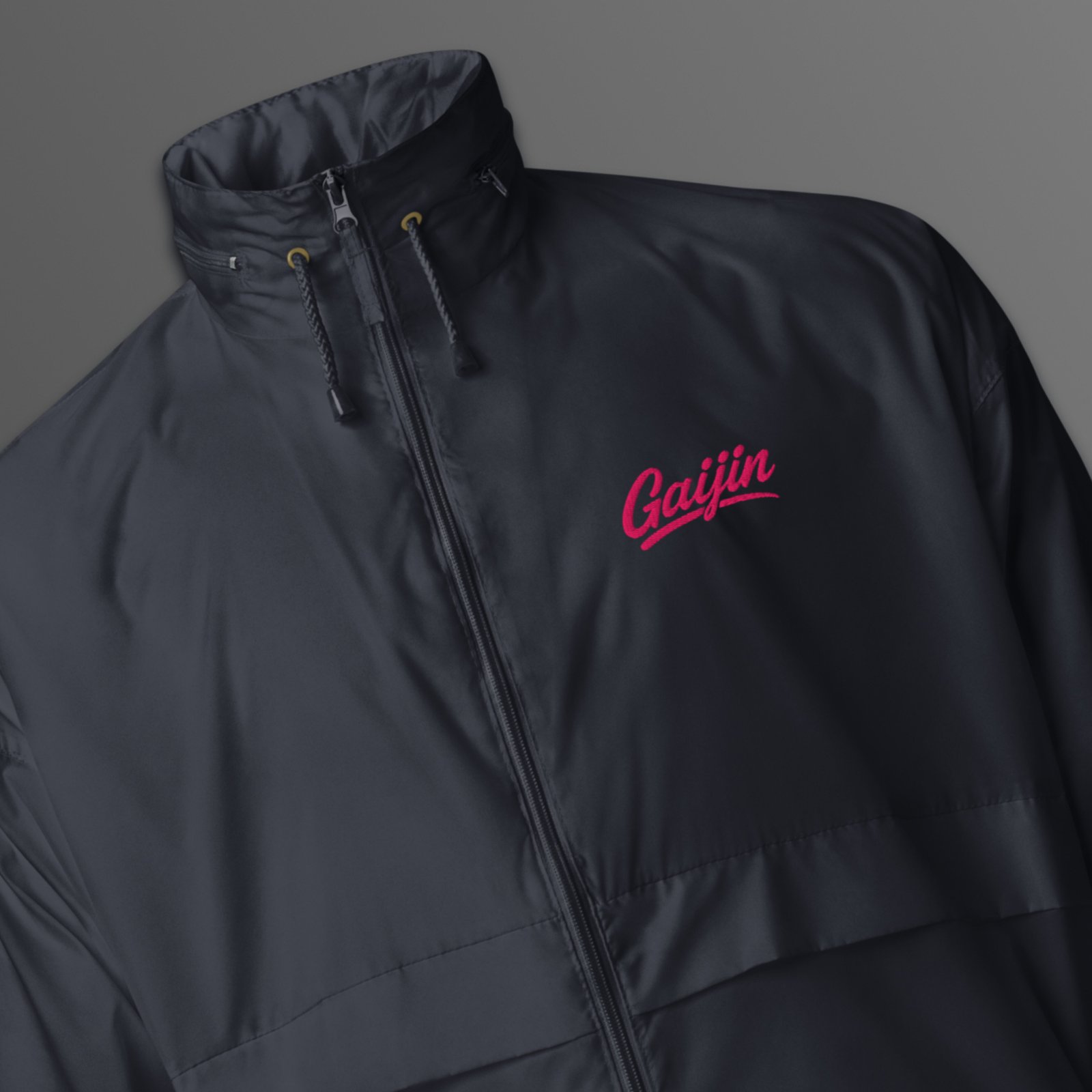 Engineered from lightweight polyamide that cuts through wind like a tuned S13 cuts through corners. The water-resistant coating sheds rain and morning dew while you’re posted up at the touge waiting for your turn to prove yourself. Clean baseball style “Gaijin” script on the chest in that signature pink thread – because even when the weather’s trash, your style stays immaculate.