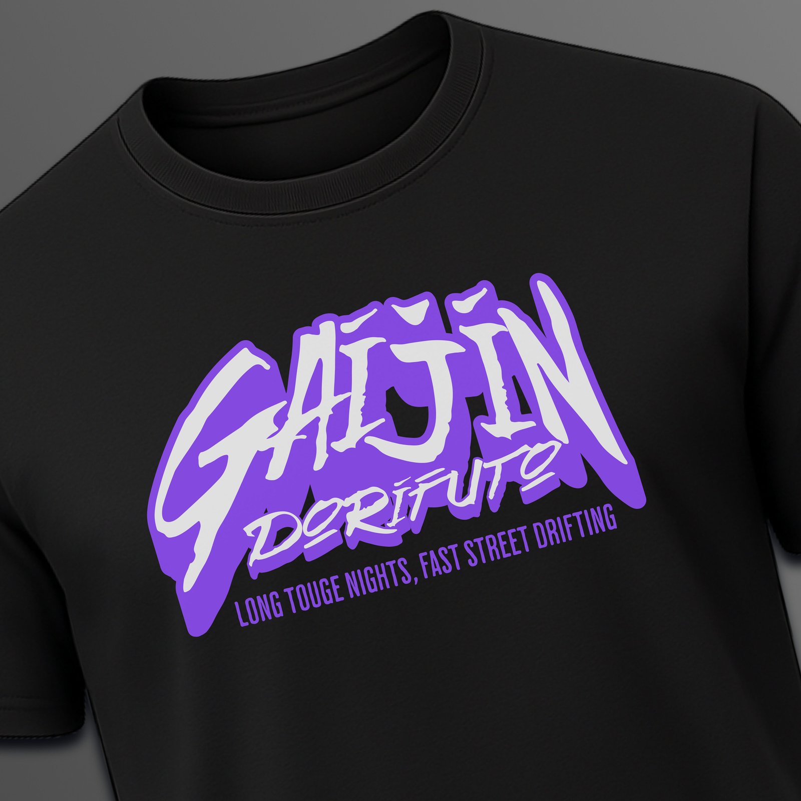 Channel Japan’s legendary mountain passes with this Gaijin Dorifuto black tee. Featuring a vibrant purple gradient logo, it celebrates late-night touge battles and the gaijin spirit—foreign drivers who earned respect through skill and passion. A tribute to drifting as a global lifestyle born on Japan’s winding roads.